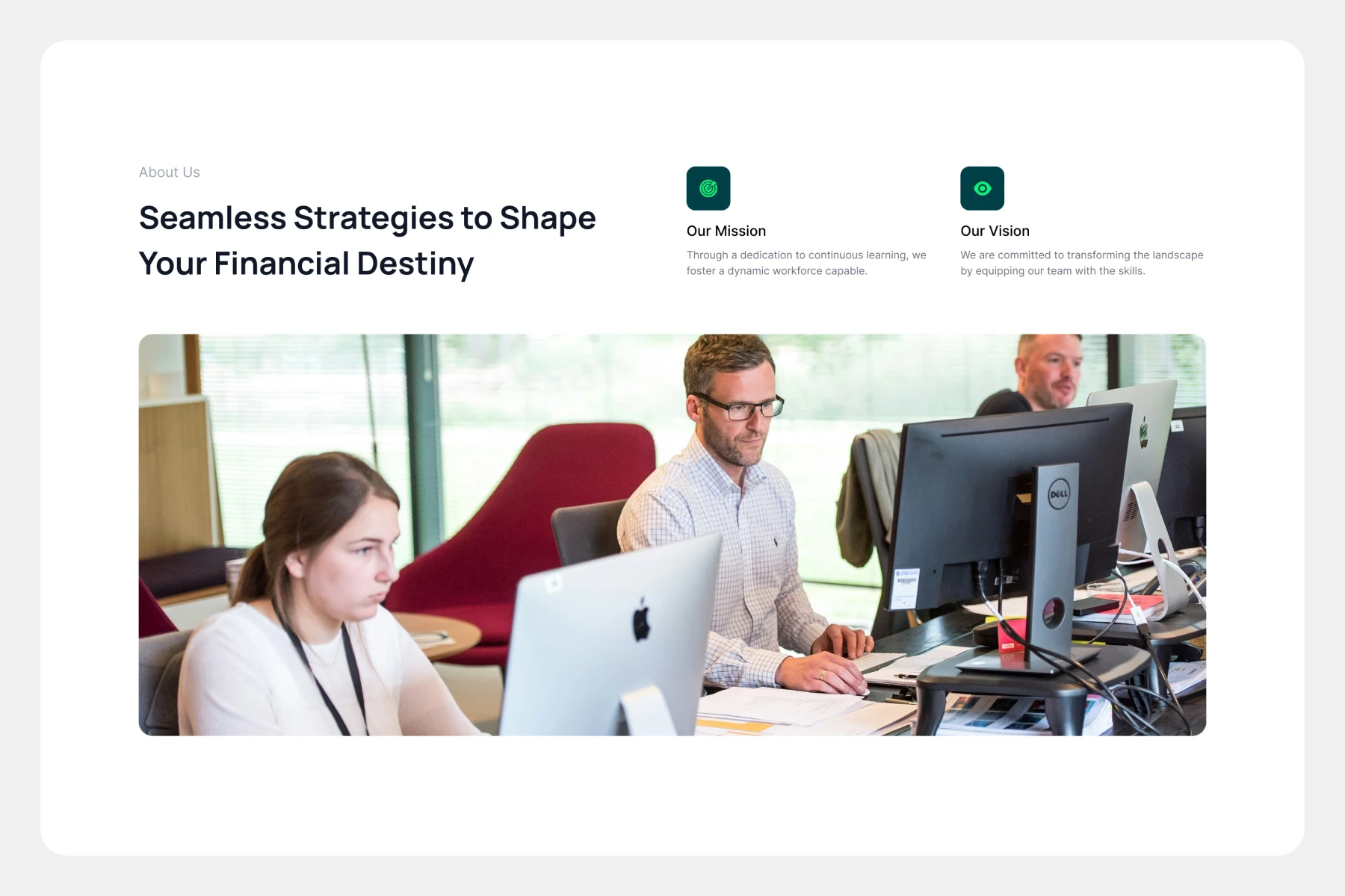 Split-screen layout, bold headline left, minimal white space, rounded CTAs, deep teal sidebar dashboard, light dashboard UI, modern fintech vibe.